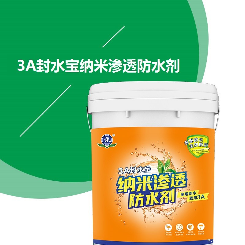 3A封水宝纳米渗透防水剂采用专用纳米分子合成树脂乳液经过多道工序制作而成,具有良好的耐水防潮、抗碱、耐湿热和优良的抗冻融性,操作简便,无毒无味。适用于混凝土、加气混凝土、墙面批刮腻子或抹灰前基层的密实(或拉毛)处理;适用于所有的新旧水泥砂浆基面的处理。处理过的墙面和地面,更适合进行贴砖、贴墙纸或做木墙板等装饰。