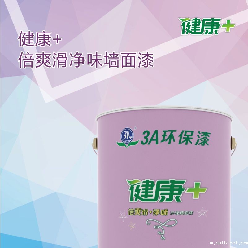 健康+倍爽滑净味环保墙面漆特别添加爽滑因子,漆膜细腻柔滑,让您的墙面亮丽爽滑;特别采用环保配方,趋零VOC,室内空气清新健康;产品透气性能好,让墙面自由呼吸,持久干爽。且产品遮盖力好,易施工,全面细致地呵护墙面,让您坐拥一个舒适健康的家。 产品特点:净味配方,趋零VOC;漆膜细腻,手感爽滑;遮盖力好,高涂布率;防霉抗碱,耐擦洗好。