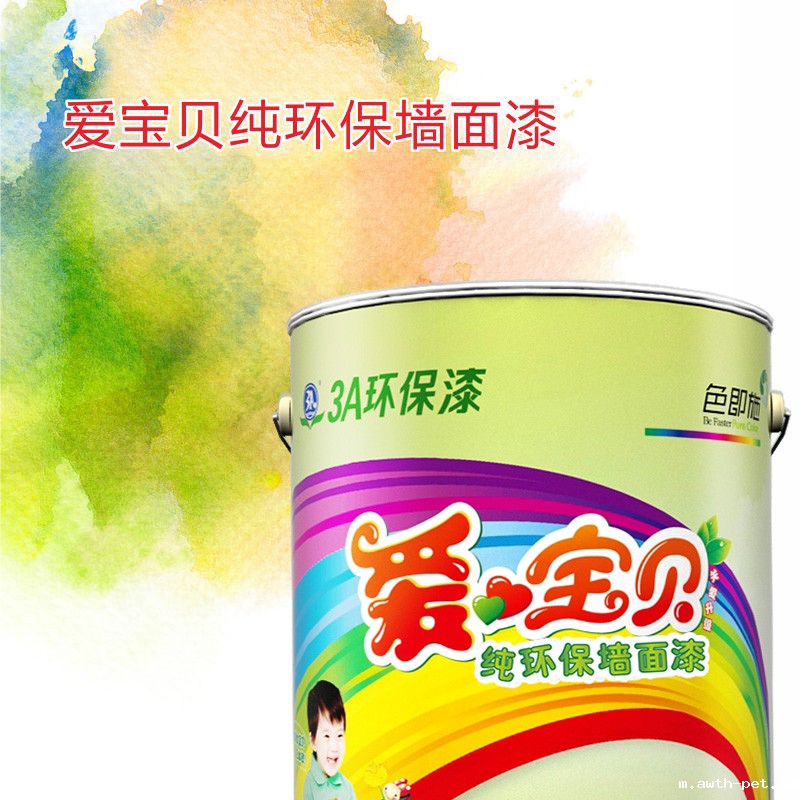 3A爱宝贝纯环保墙面漆采用“IPS+”净味技术,纯正无味,不含APEO,VOC含量远优于欧洲标准(≤50g/L),与环保色浆一同组成多彩的纯环保品质,另有抗污耐洗、色彩丰富、保色性强、超柔滑手感、高效防霉等完美表现,特别为准妈妈与宝宝营造绿色、纯净、健康、多彩的生活空间。 产品特性:1.采用无APEO化合物科技;2.纯正“IPS+”净味技术,超低VOC;3.增强防霉抗碱、抗污耐洗;4.漆膜超滑细腻;5.遮盖力强;6.配用S6系列环保色彩技术 。